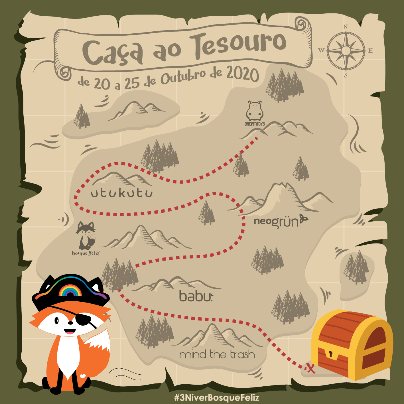 É com uma enorme satisfação e felicidade que lançamos a Caça ao Tesouro do 3º Aniversário do Bosque Feliz.