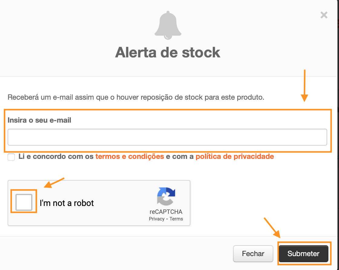 O nosso site permite avisar-vos quando um produto sem stock está novamente disponível: