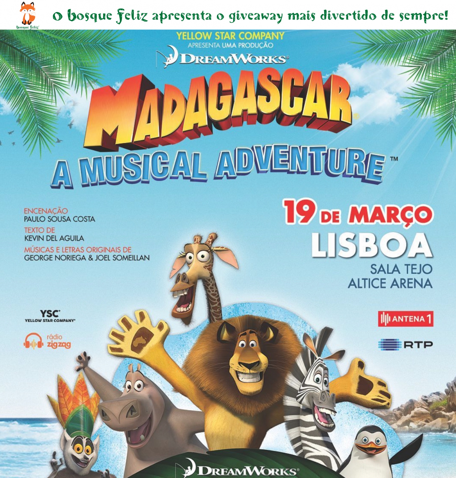 Estamos a oferecer 5 Bilhetes Duplos para o Espetáculo Madagáscar