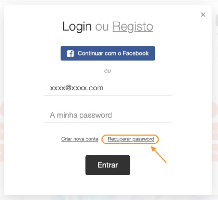 2) Quando a janela abrir, clicar em "Recuperar Password".