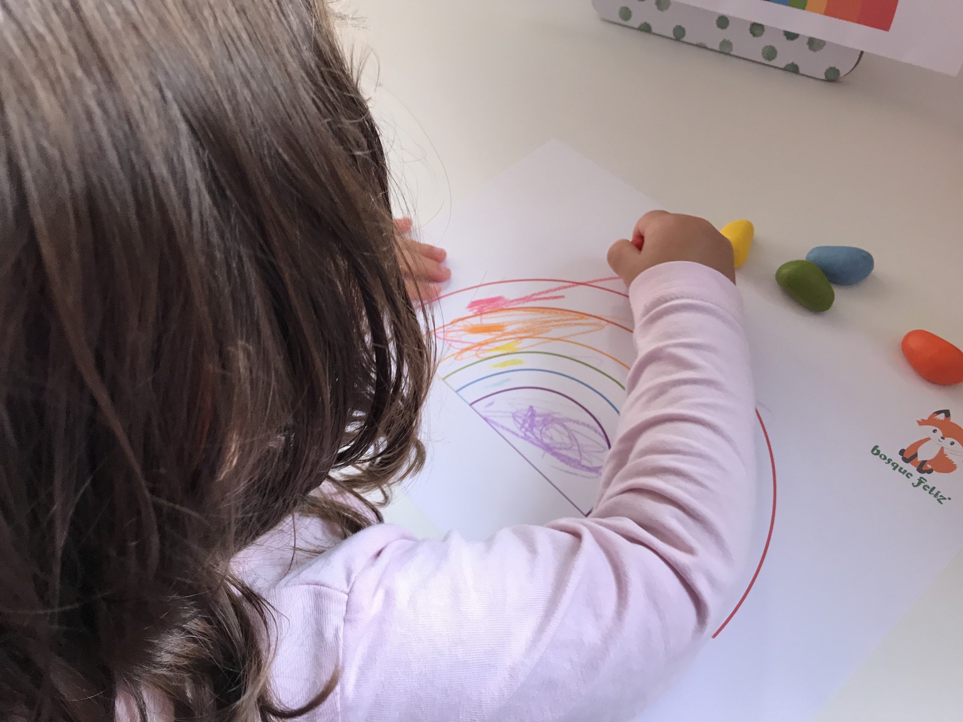 Pintou com os seus Crayon Rocks de forma livre, mas compreendeu que deveria preencher os espaços entre as linhas. Esta atividade pode não ser tão fácil para todas as crianças e algumas podem precisar de um inserts - algo que também quero fazer aqui em casa - podem sempre pegar no molde <aqui> e fazer em papelão o Insert.