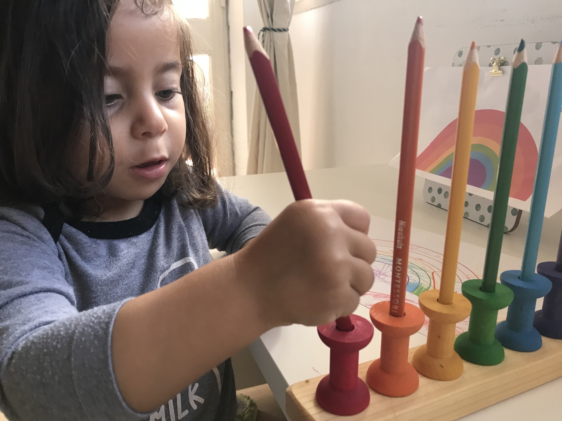 Segundo a Pedagogia Montessori, a Gabriela encontra-se no chamado Período Sensível do Detalhe e da Ordem, que dura até os 6 anos de idade.