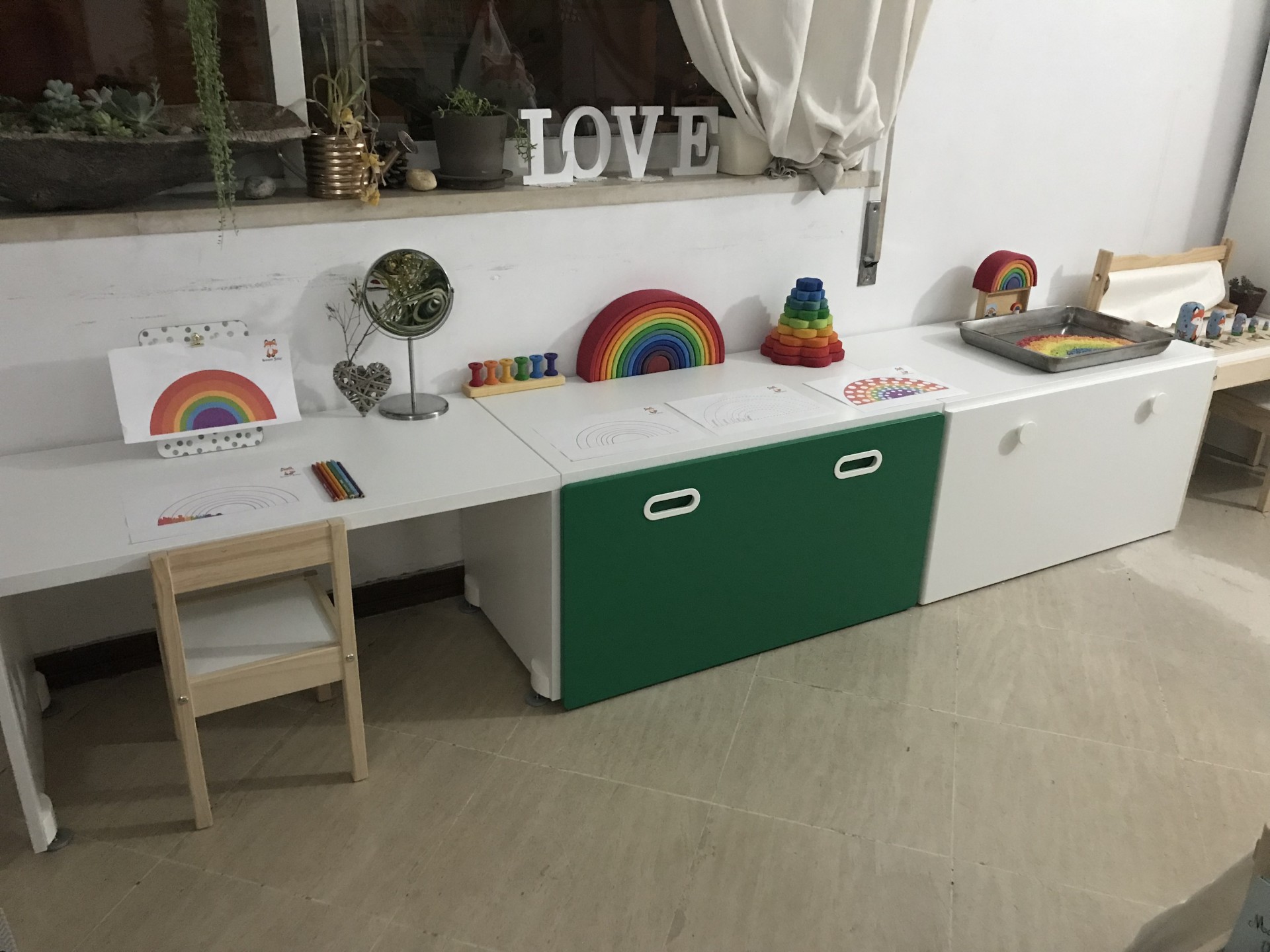 Gabirela está com 2 anos, vivencia a fase mais frágil desse desenvolvimento, daí o especial cuidado no ambiente que preparei, de forma a proporcionar uma interação pacífica com o mundo que a rodeia, ajudando também a criar bases e enraizando “as sementes” na sua mente absorvente, que está agora mais consciente e sedenta de interação.