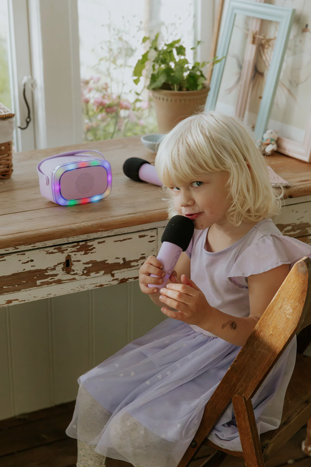 2 Microfones e Coluna Lilás com LED | Lalarma
