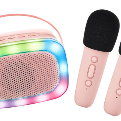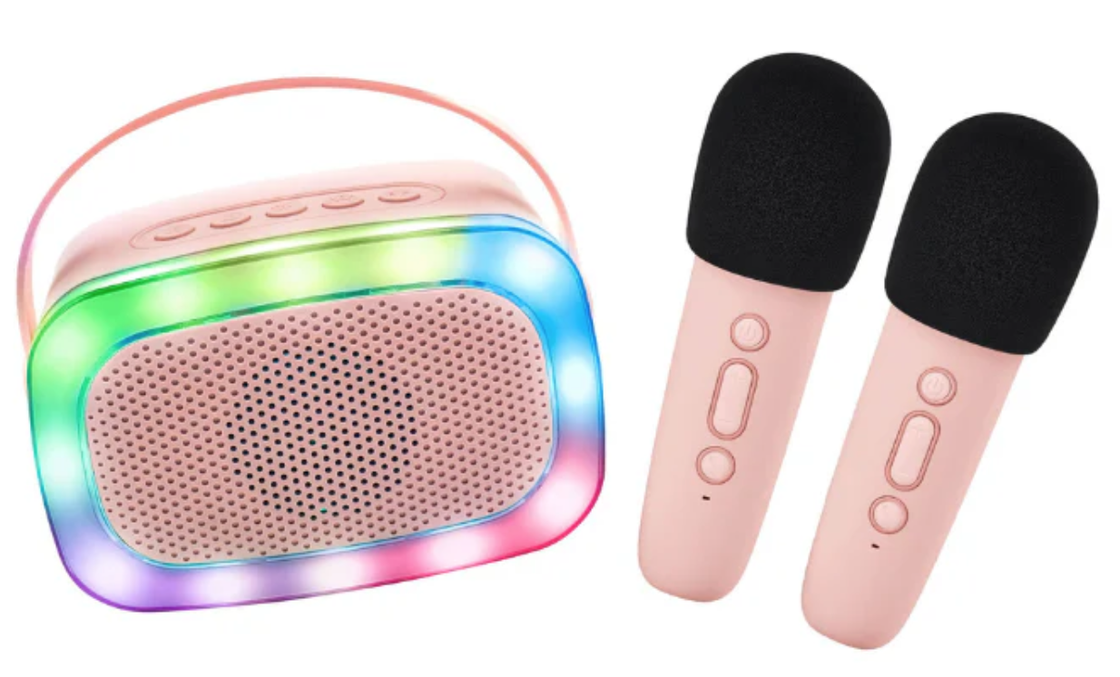 2 Microfones e Coluna Rosa com LED | Lalarma
