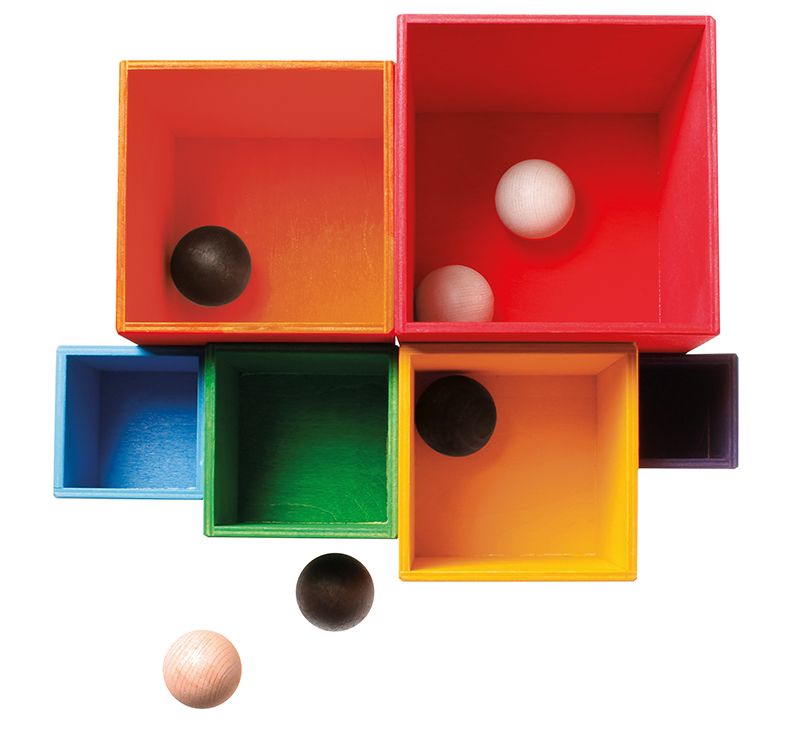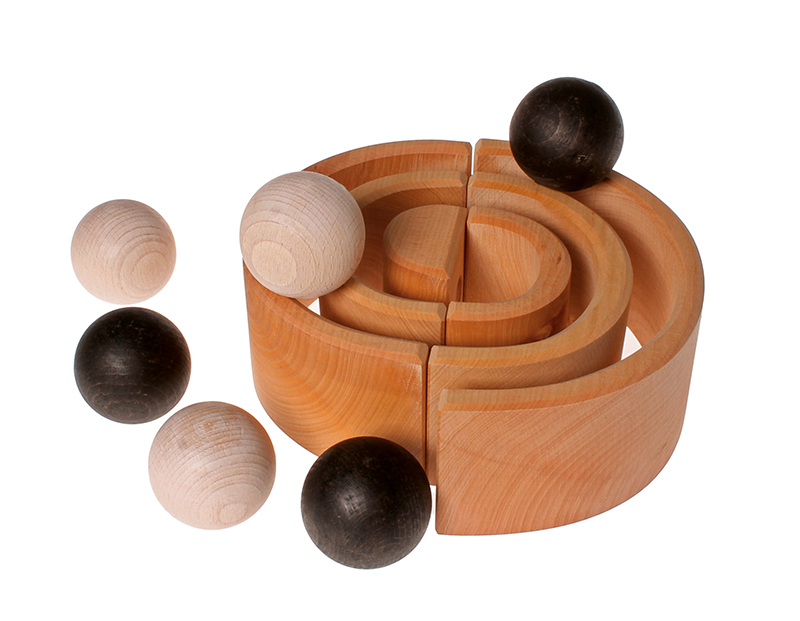 6 Wooden Balls in black and white. Perfect for playing with the Rainbow 10670 for marble games. The high contrast in colour as well as textured surfaces of the monochrome series of toys help to develop individual needs. Children with visual handicaps will be motivated to discover the world around them by discerning a more visible world. These multi-sensory toys with simple forms, high contrast colouring, and textured surfaces or motion driven sounds will aid in development and stimulation of particular senses.