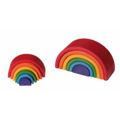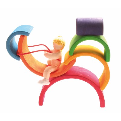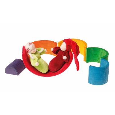This Rainbow tunnel is really versatile and ideal already for small children! Toddlers stack, sort and build and as the children get older they will use it as a cradle for dolls, as fence for animals, like a tunnel or bridge for vehicles, as house for dwarfs and dollhouse dolls, build amazing sculptures... this rainbow will always be integrated in playing with a lot of fantasy. This product is recommended by "spiel gut" (good toy guide).