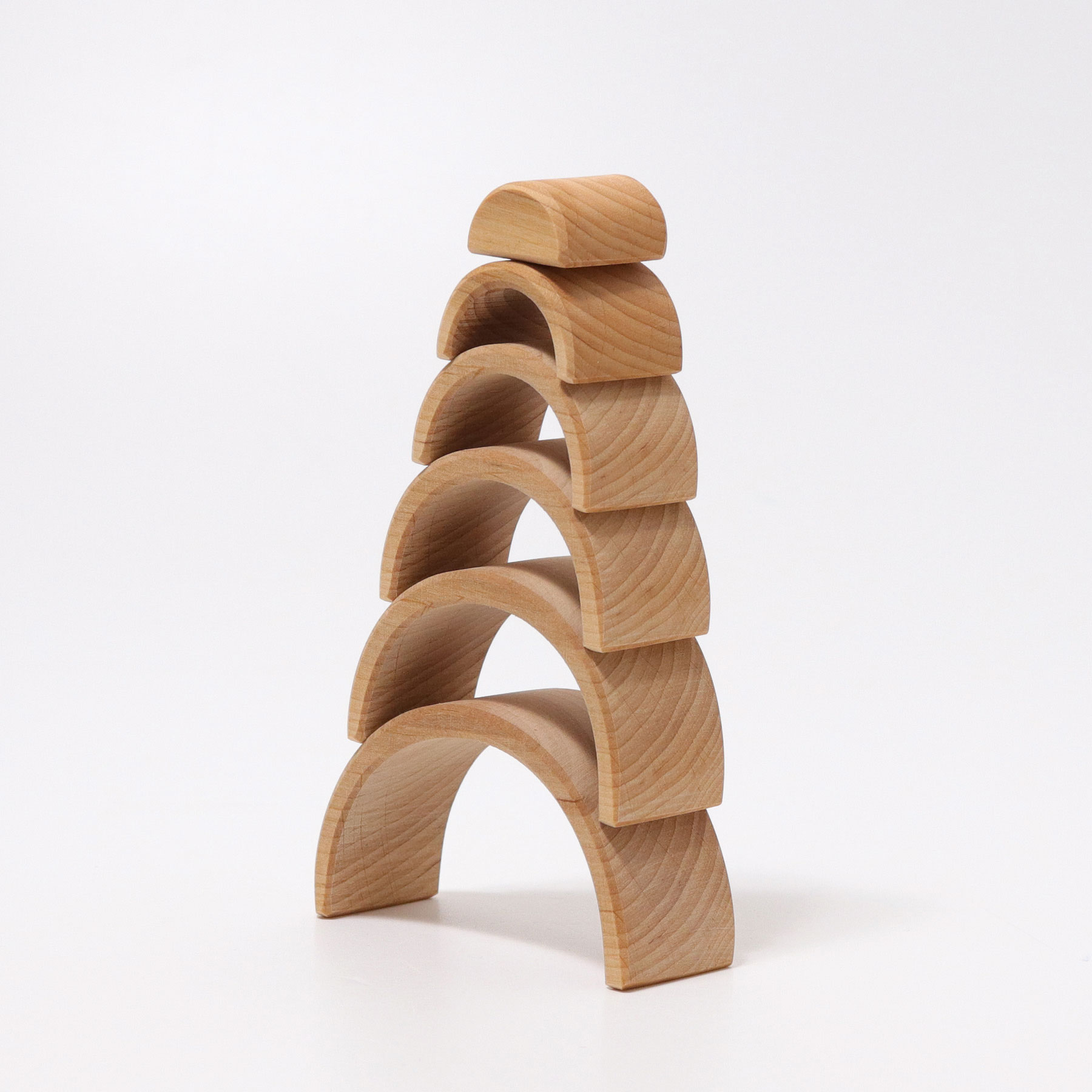 Toddlers stack, sort and build and as the children get older they will use it as a cradle for dolls, as fence for animals, like a tunnel or bridge for vehicles, as house for dwarfs and dollhouse dolls, build amazing sculptures... this rainbow will always be integrated in playing with a lot of fantasy.