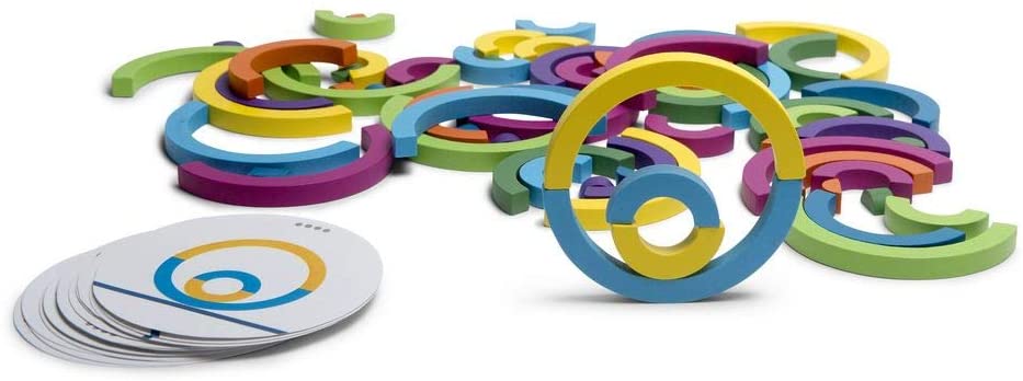 Uma mistura de Tangram com Kubus, chegaram os arcos de velocidade, em que cada jogador terá uma quantidade de arcos e deverá recriar a carta que fica no centro... quem for mais rápido... ganha.