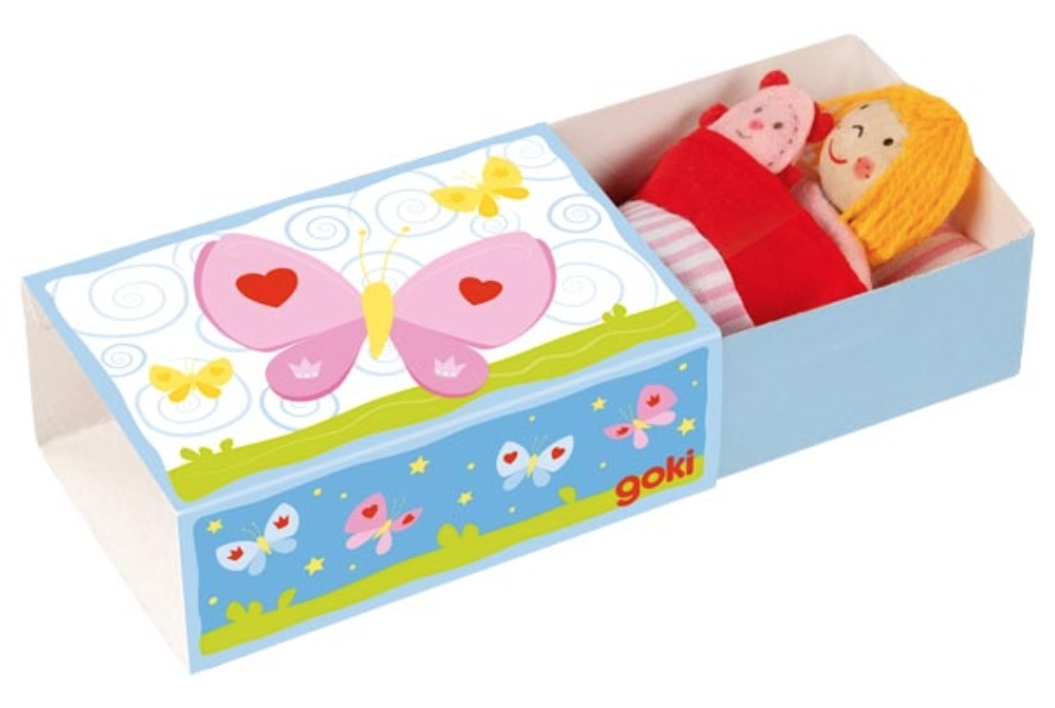 Uma boneca pequenina e sua cama, que podes carregar para todo o lado.