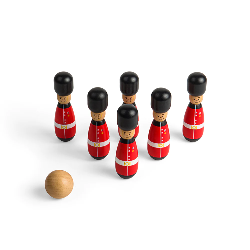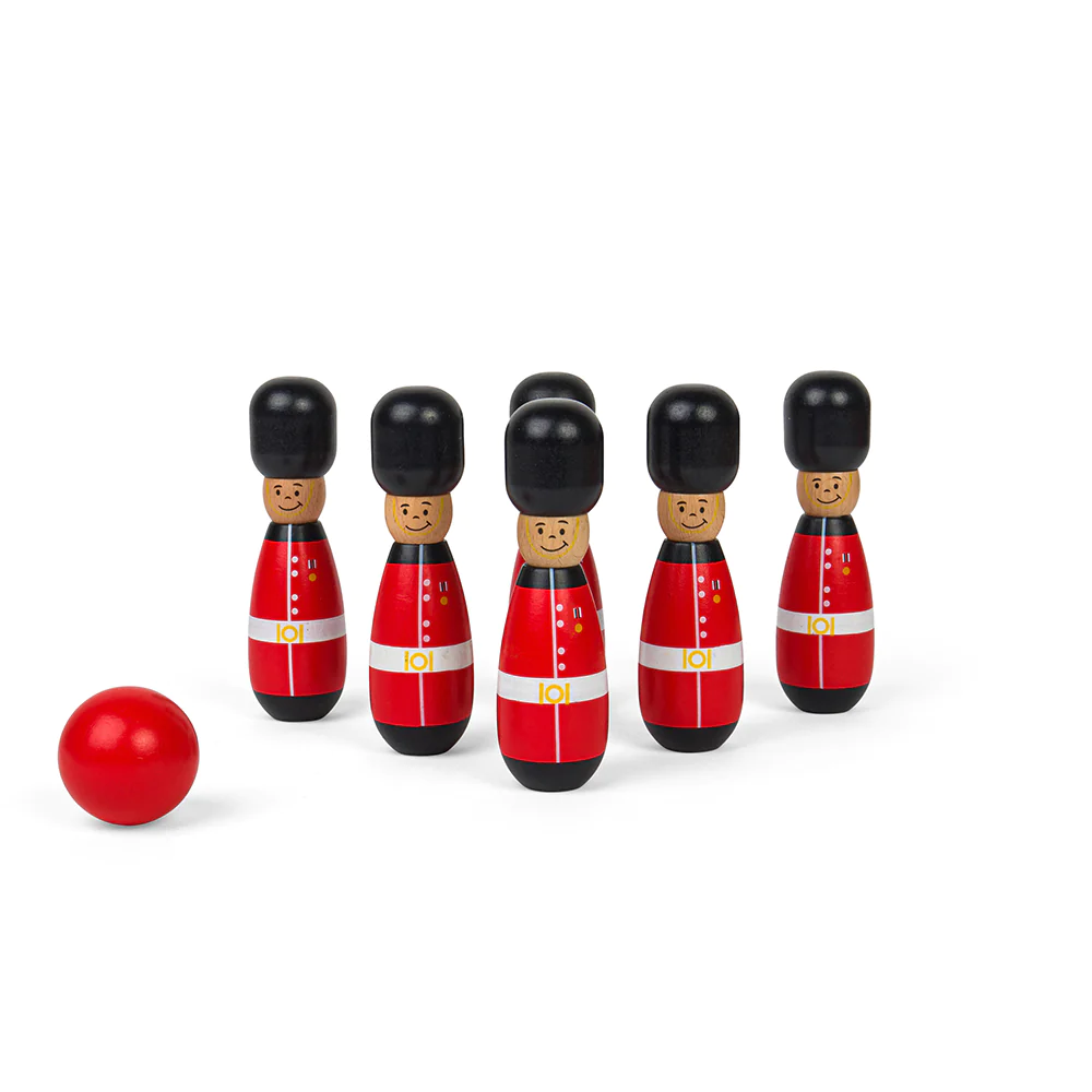 Fabricado em madeira de alta qualidade e revestido com tinta não tóxica, este clássico jogo de bowling é ideal para longas sessões de jogo entre família ou amigos.