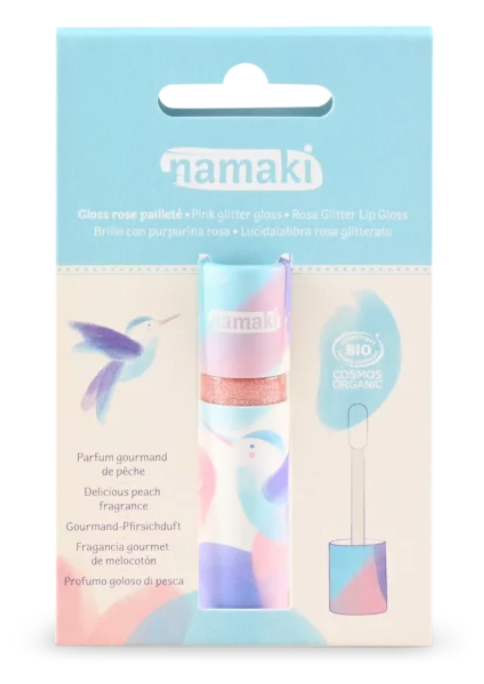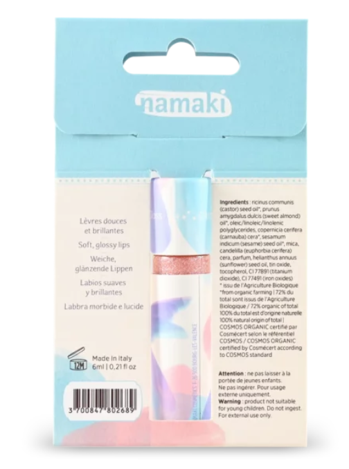 Brilho labial natural orgânicos Namaki - As crianças adoram vestir-se e aproveitar todas as oportunidades de se maquilhar como os adultos. Mas a maquilhagem para adultos não é boa para a sua pele sensível, então precisam de produtos feitos especificamente para eles. O brilho labial Namaki é 100% natural (mas ainda divertido) adiciona uma cor subtil aos lábios para uma maquilhagem discreta que é rosa pérola.