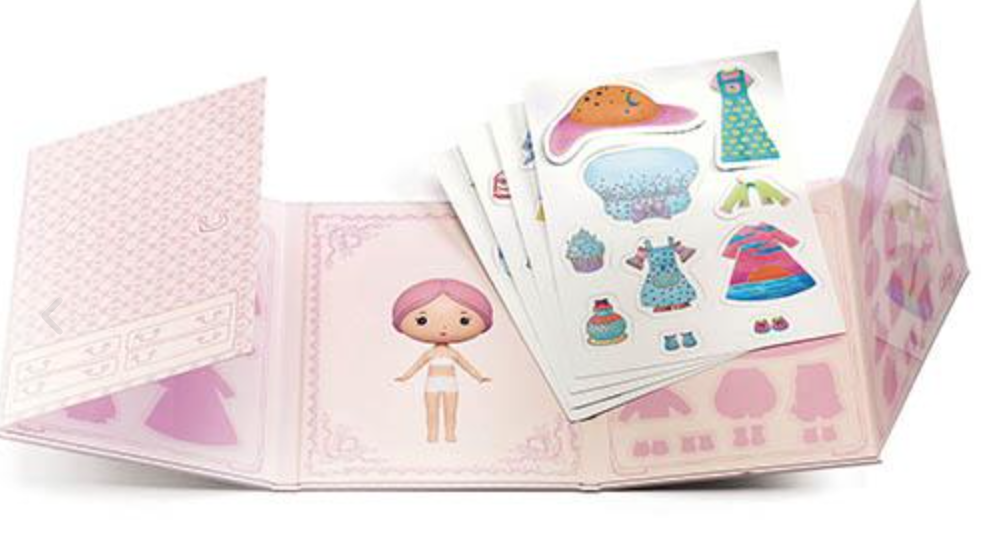 Veste e cria a tua própria boneca, imaginando as suas roupas, com 40 autocolantes removíveis.