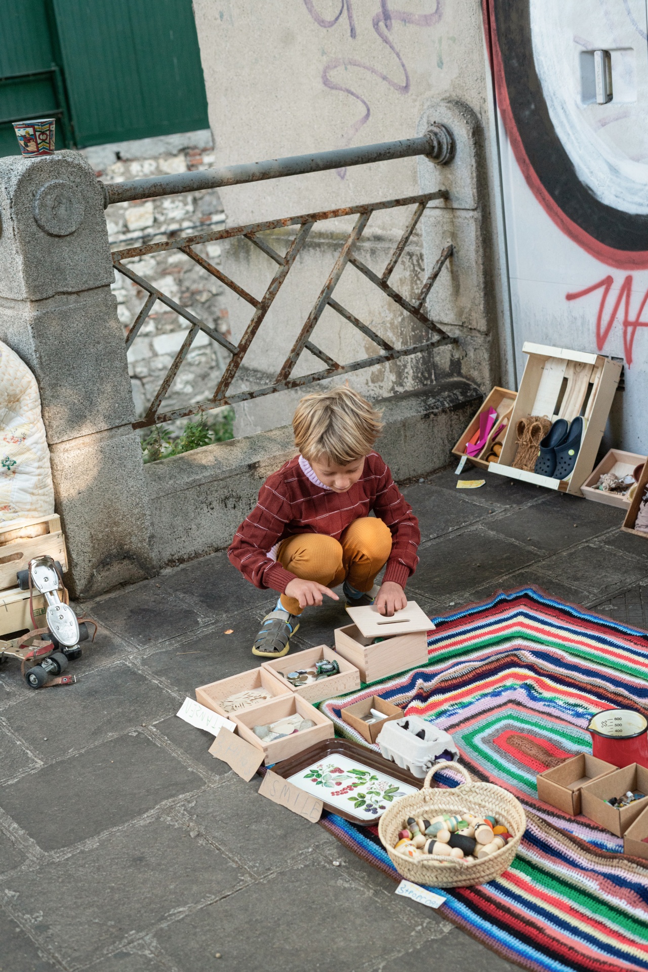 Para além disso, existe todo um lado mágico na exploração de caixas que guardam a capacidade de esconder pequenos tesouros que desaparecem através de um buraco após sermos nós a colocar, explorando também conceitos simbólicos de classificação, pareamento, ação/ reação e muitos movimentos, aprendizados e diversão.