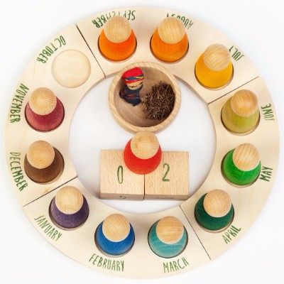 Baseado na pedagogia Waldorf, este calendário anual pode e deve ser manipulado pela criança aprender e compreender a passagem do tempo.
