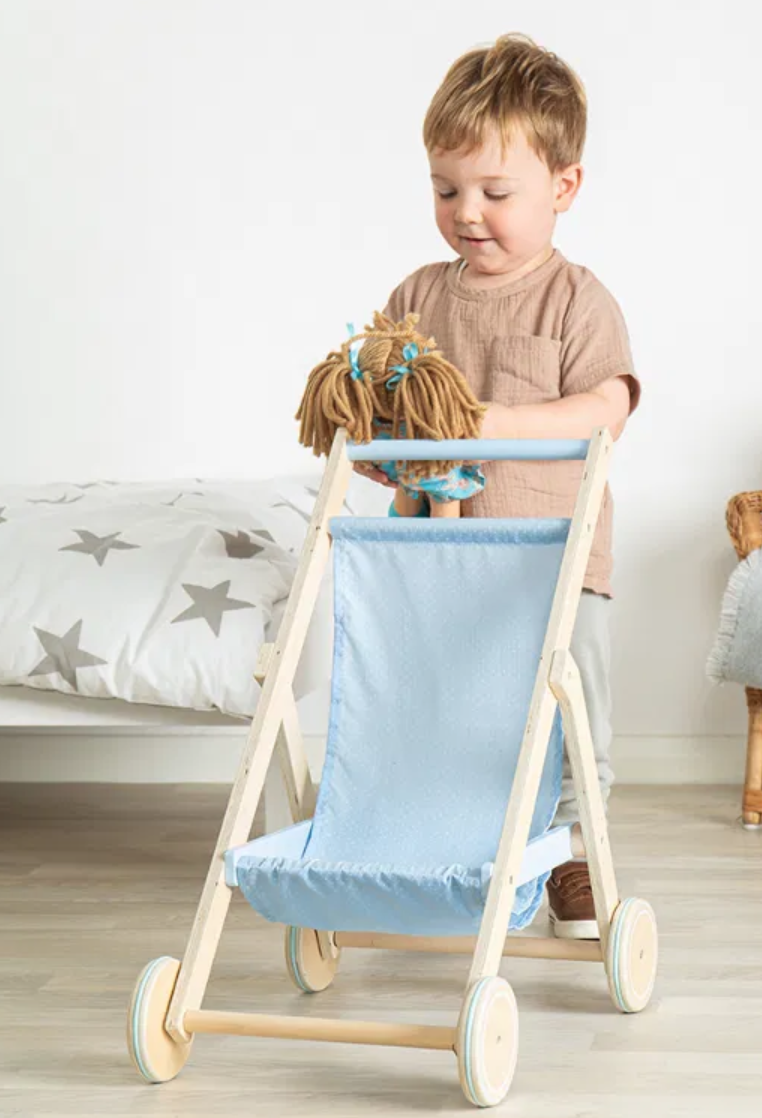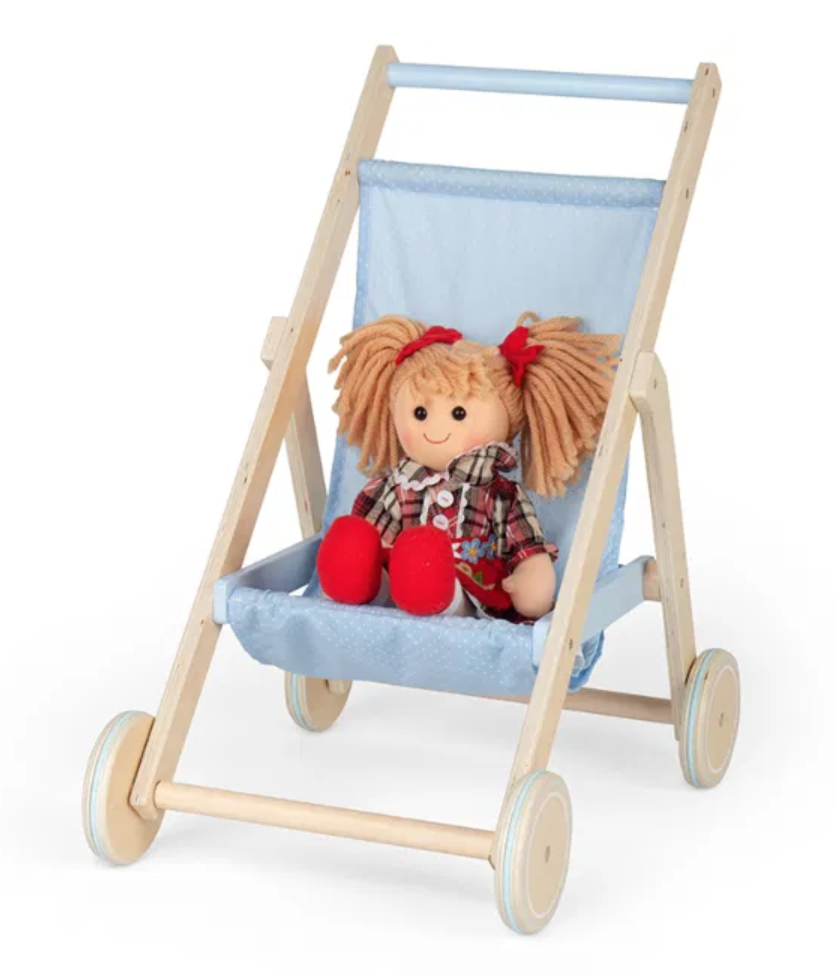 As crianças podem levar suas bonecas e ursinhos de pelúcia para aventuras em família com este charmoso carrinho de bonecas de madeira. Com o tamanho perfeito para crianças pequenas, o carrinho é uma ótima maneira de manter seu filho ativo e desenvolvendo suas habilidades motoras, enquanto o efeito de madeira natural ficará lindo no quarto ou na sala de jogos.