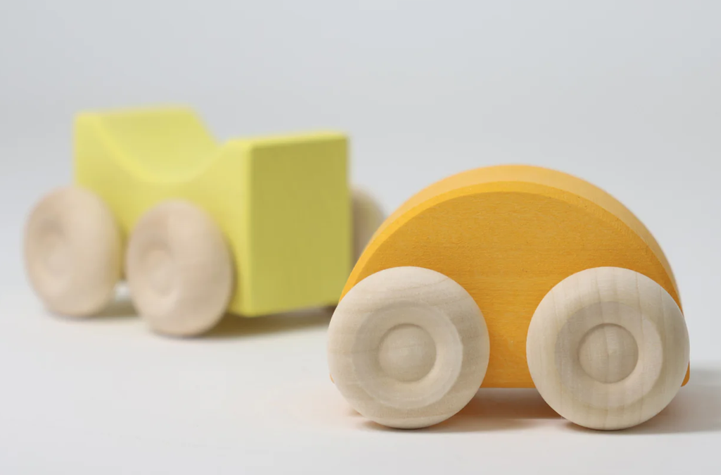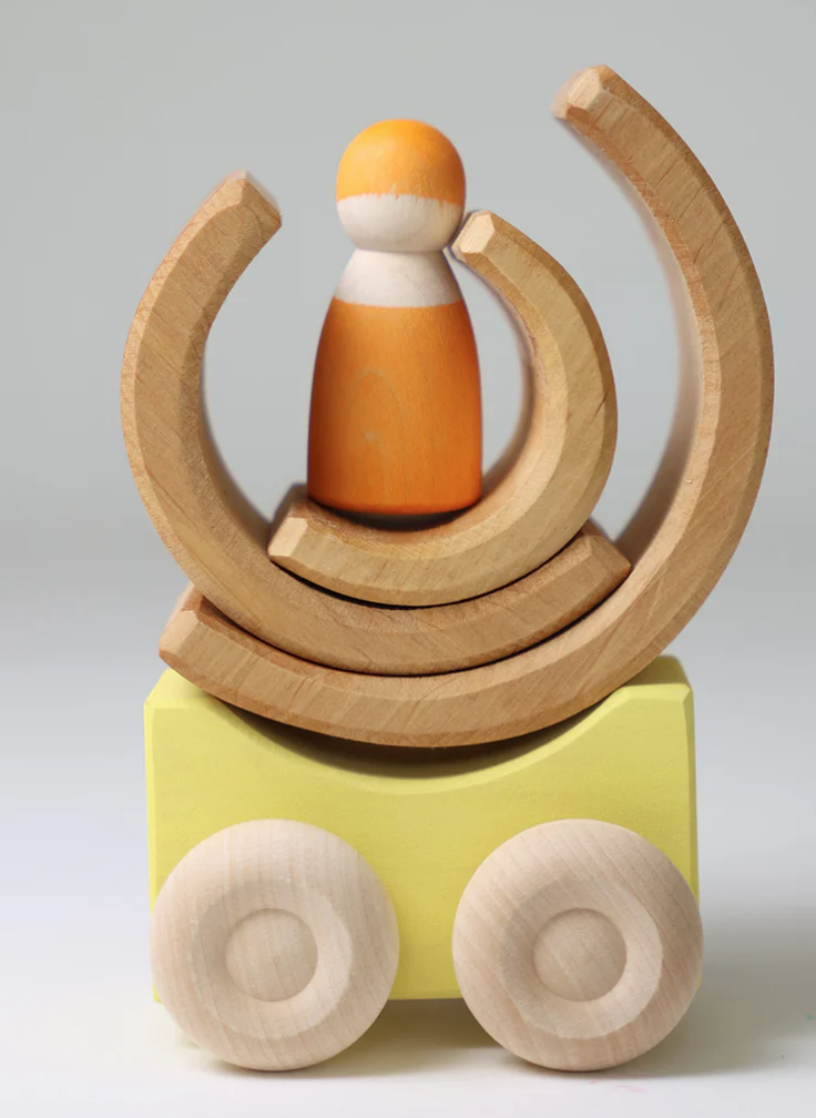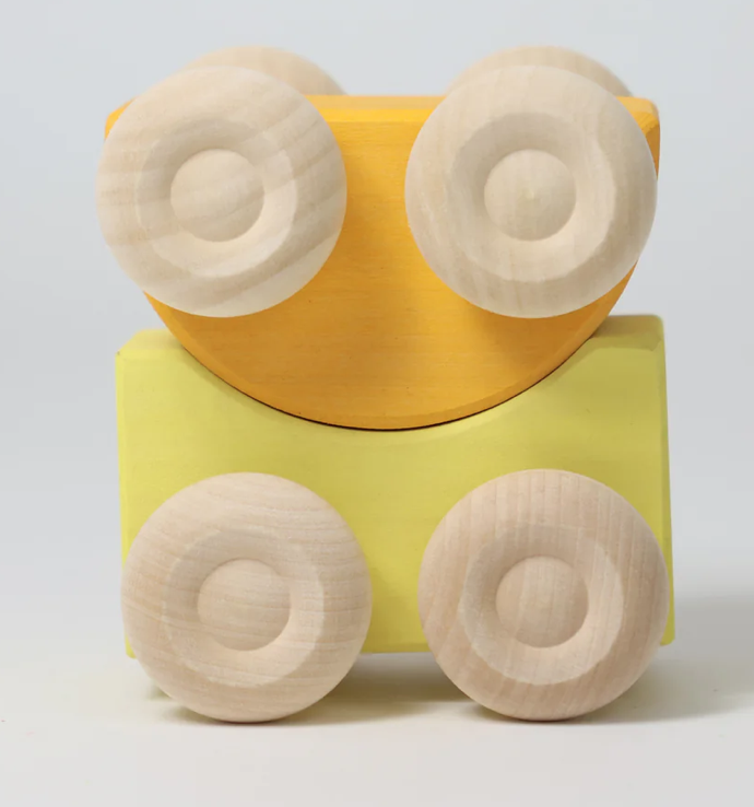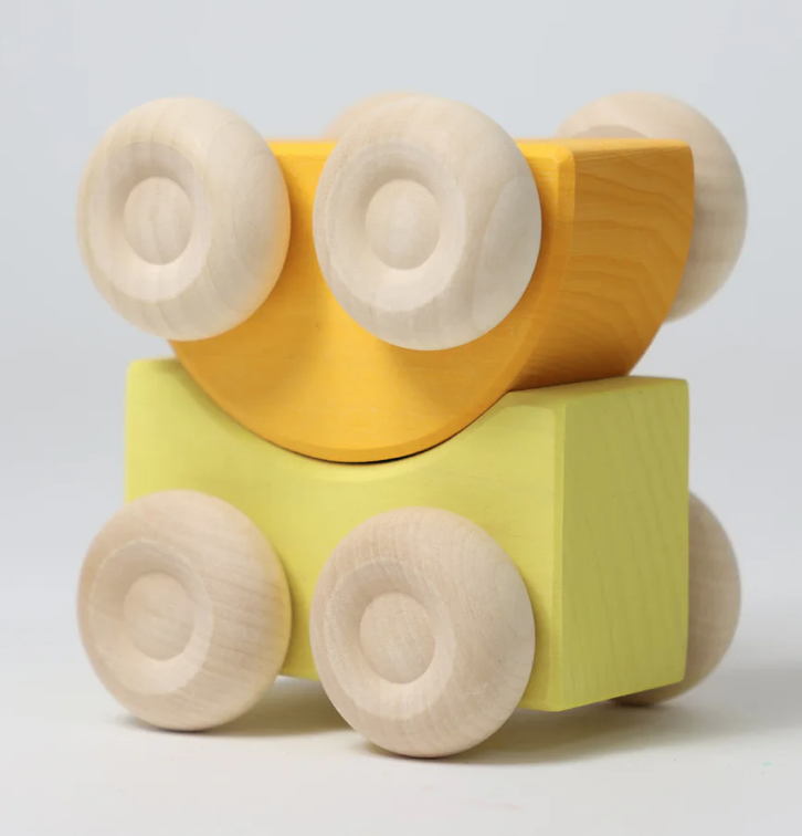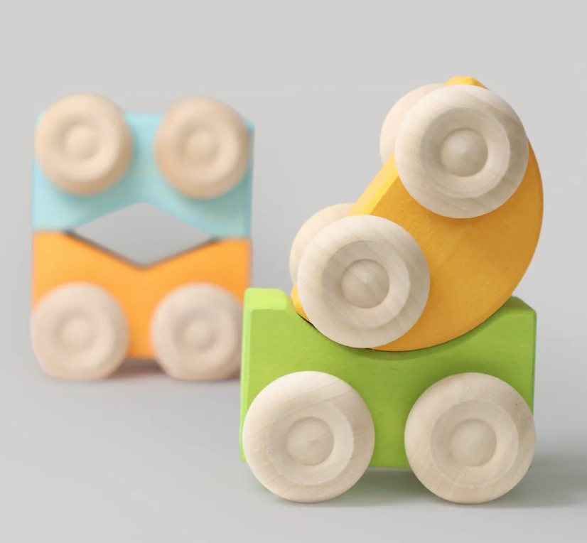 Os carrinhos empilháveis combinam dois temas populares nas brincadeiras infantis: podem ser empilhados e podem rolar.