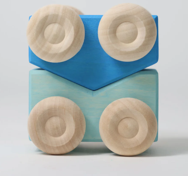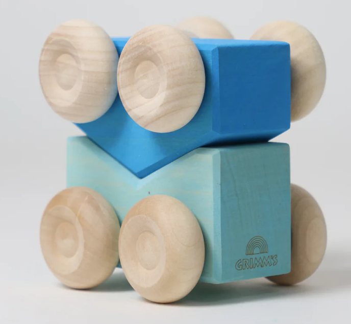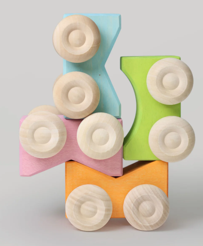 Os carrinhos empilháveis combinam dois temas populares nas brincadeiras infantis: podem ser empilhados e podem rolar.