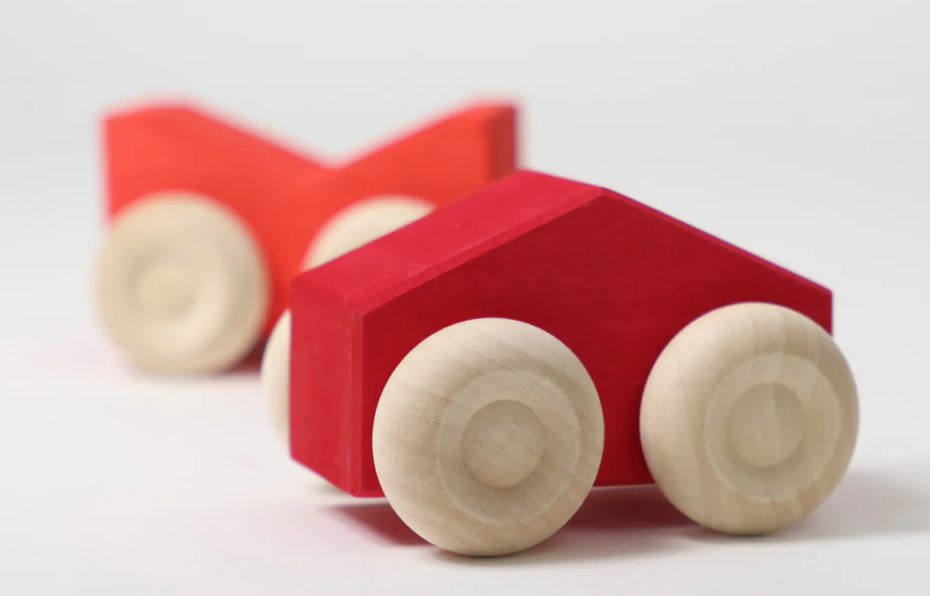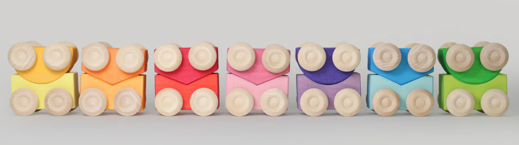 Os carrinhos empilháveis combinam dois temas populares nas brincadeiras infantis: podem ser empilhados e podem rolar.