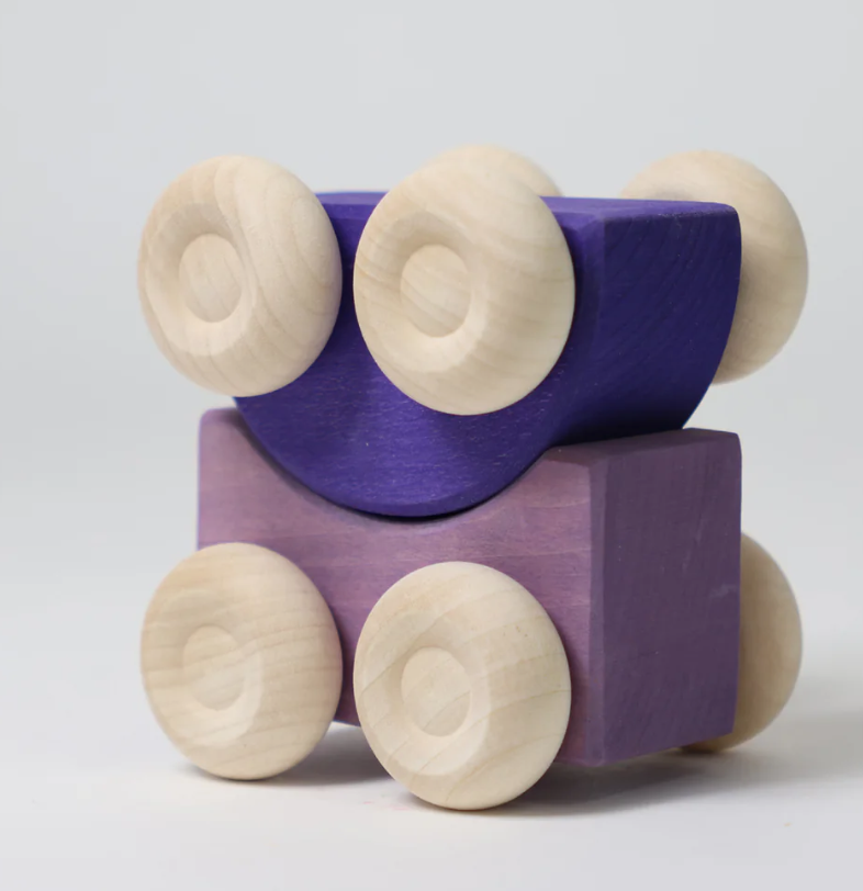 Os carrinhos empilháveis combinam dois temas populares nas brincadeiras infantis: podem ser empilhados e podem rolar.