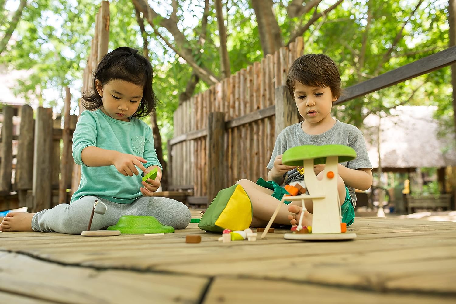 Inovação PlanWood™: Criados a partir de um material único da PlanToys, que aproveita o excedente de serradura e restos de madeira para criar um material sustentável e resistente.