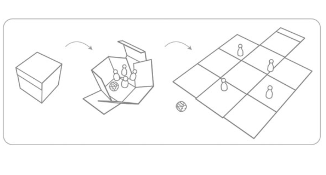 Contém: 1 tabuleiro de jogo, 4 figuras de jogo, 1 dado