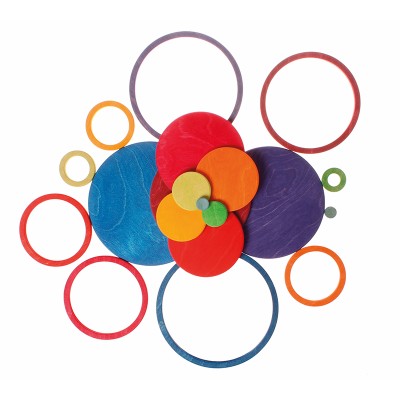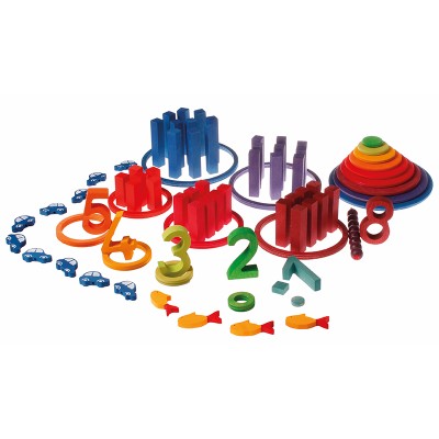 The Concentric Circles and Rings are a perfect complement to GRIMM´s World of Numbers (42100 Stepped Counting Blocks, 60310 Building Set Numbers, 10234 Colourful Bead Stairs, 03070 Figures for counting and story telling).