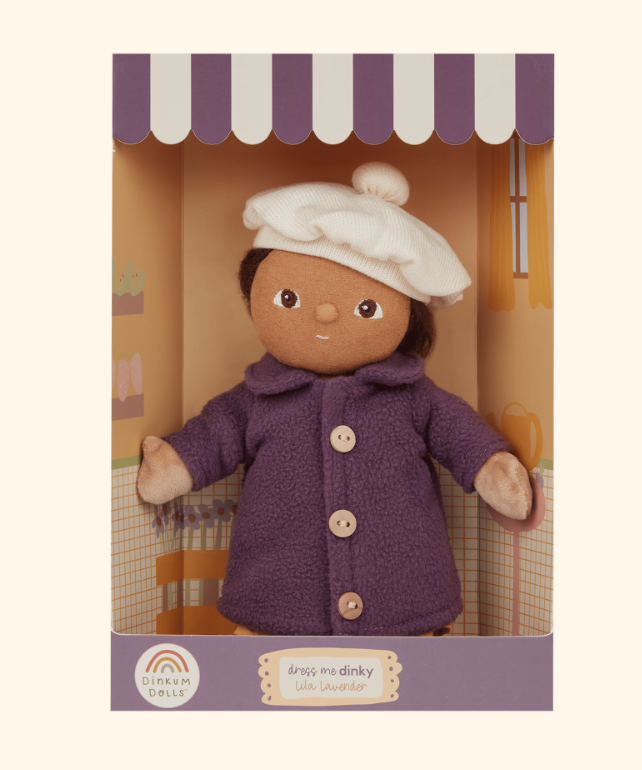 A Lila Lavender tem um variado guarda roupa, cada dia é uma chance para uma nova aventura! Sob seu sobretudo roxo, ela usa seu lindo vestido amarelo vibrante e, para completar, sua boina branca – Lila está pronta para conquistar o mundo, faça chuva ou faça sol!