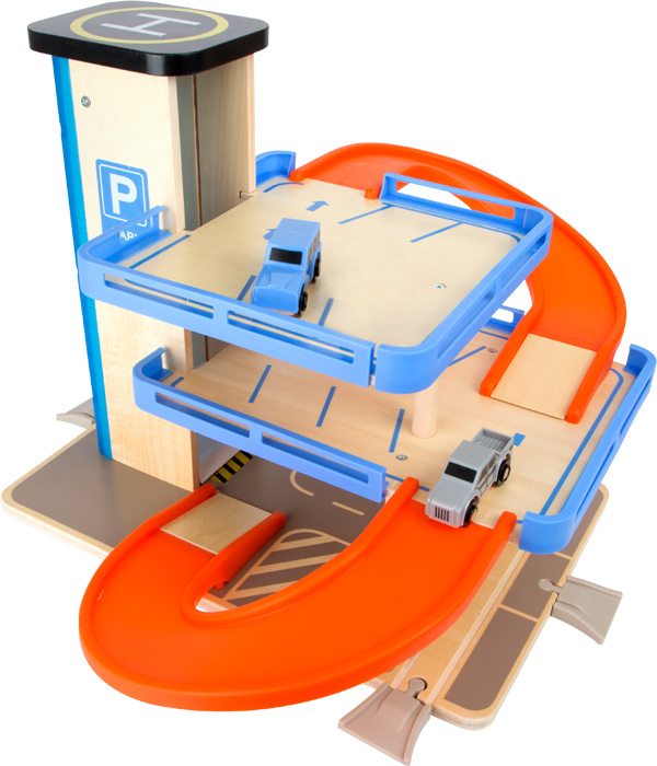 The railway track runs through the car park and can be combined with conventional track brands.
