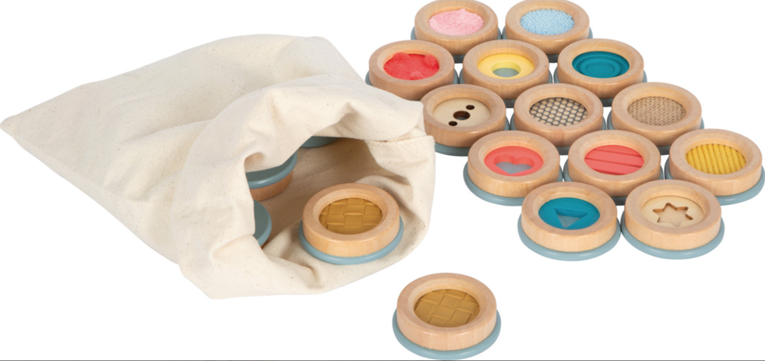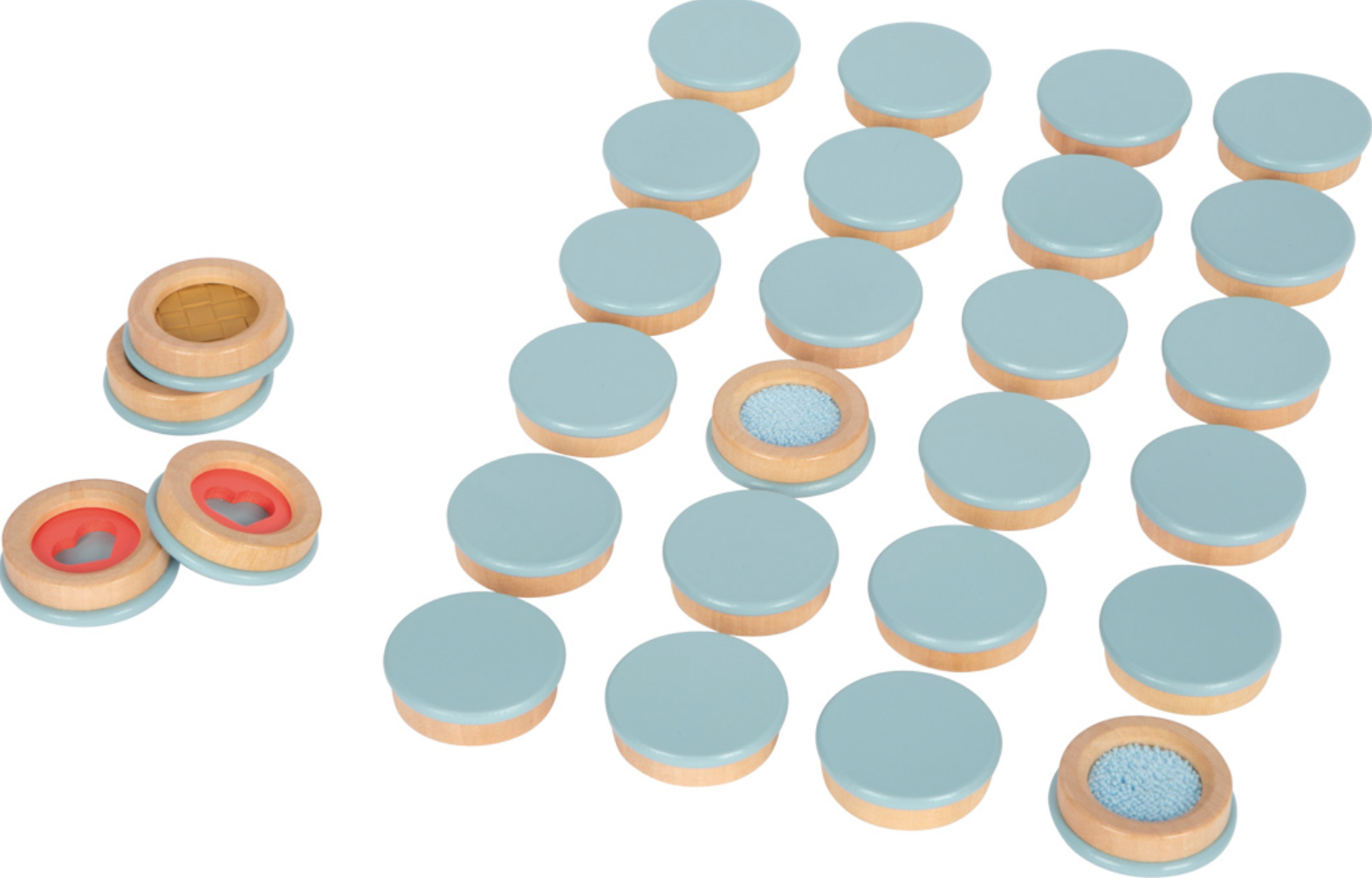 Também pode ser jogado como um jogo de memória visual, uma vez que as diferentes superfícies também têm aspetos diferentes. É um jogo de memória versátil que treina o tato e é muito divertido!