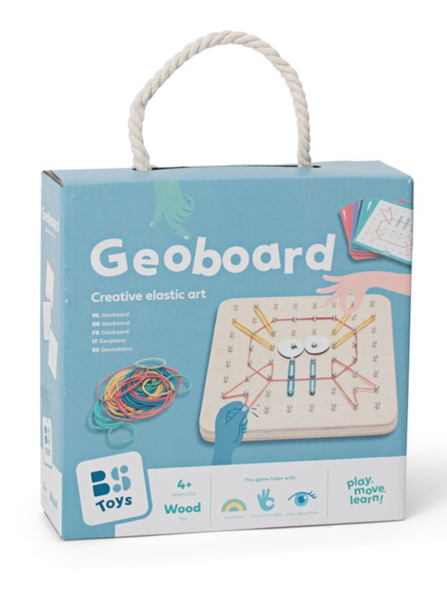 O objetivo é fazer diferentes formas geométricas e figuras no quadro com os elásticos.