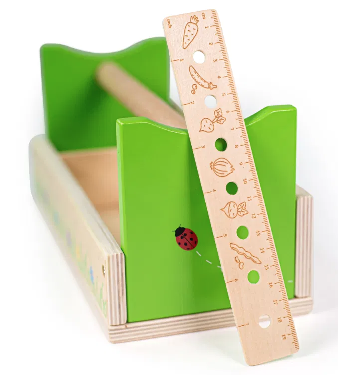 Vem com 11 peças no total, incluindo luvas de jardinagem, régua, pá, ancinho e muito mais. Cada uma das ferramentas de jardinagem foi especialmente projetada para mãos pequenas. Os cabos são feitos de madeira lisa e são fáceis de segurar.