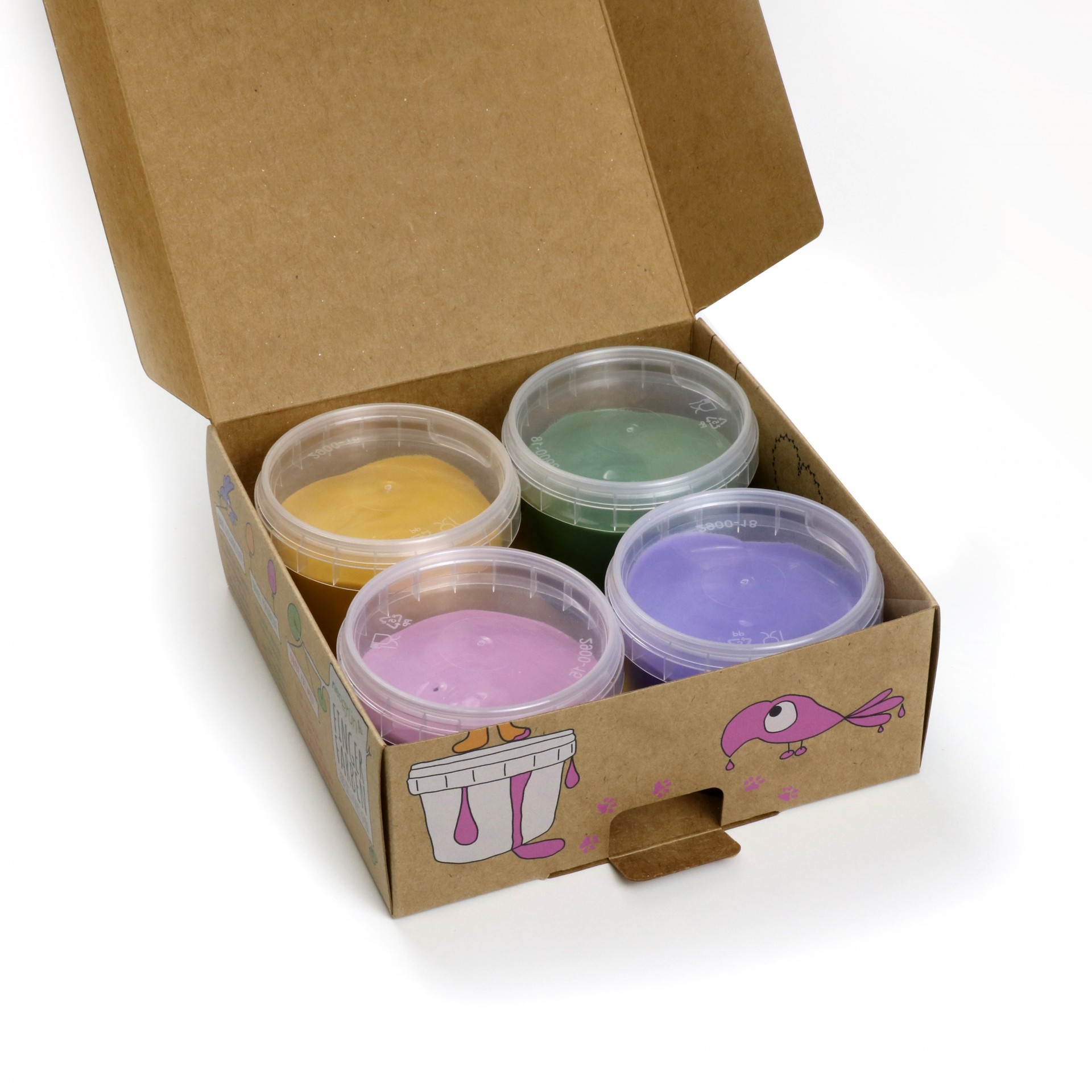 Luka, o gato, gosta de 2 coisas - correr atrás de pássaros todo o dia e brincar com a nossa cremosa e colorida tinta de dedos. Luka adora pintar as casas de pássaros das cores que fazem parte deste conjunto: amarelo, verde, rosa e roxo.