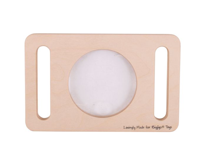 Esta lente de aumento clássica, possui duas alças e um design de madeira de fácil utilização para as mãos dos pequenos.