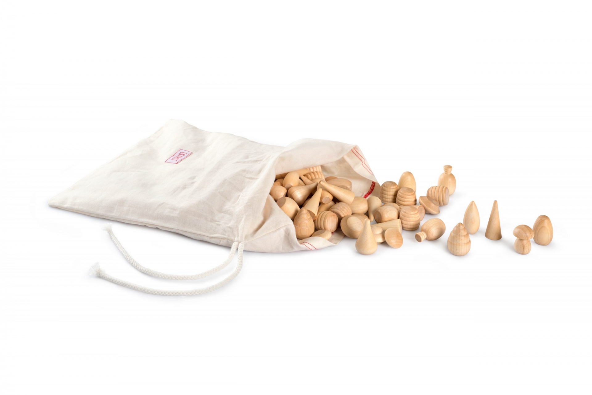 Contém: 120 peças em madeira natural com 10 formas diferentes