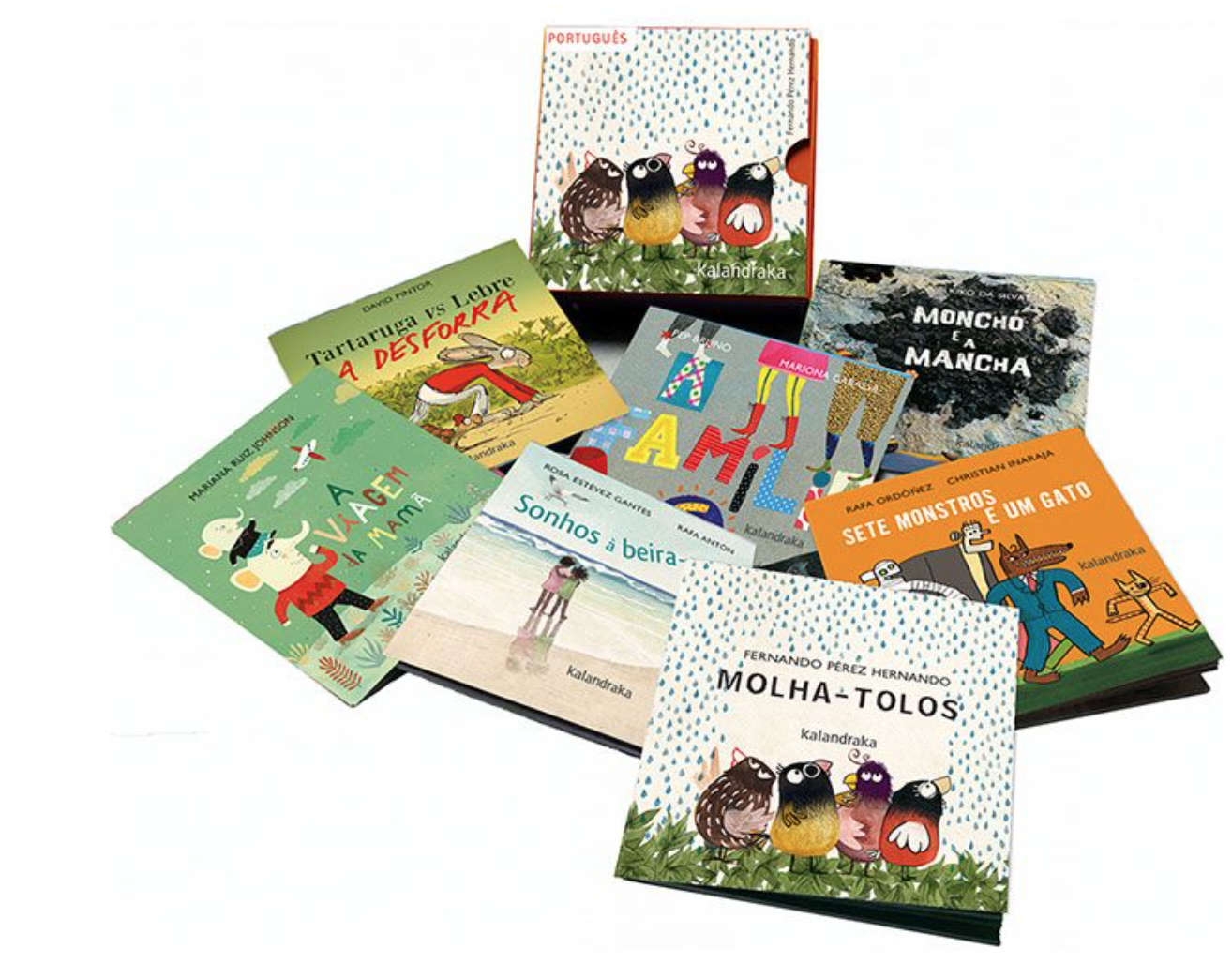 A Kalandraka reúne numa pequena caixa sete minilivros imperdíveis de alguns dos seus autores mais conhecidos, todos eles aconselhados pelo PLANO NACIONAL DE LEITURA | LER+.