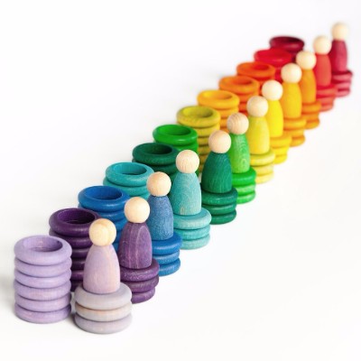 Contém: 12 Nins, 72 Argolas e 36 Moedas nas cores do Arco-Íris, 1 Saco de algodão para transporte.