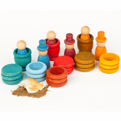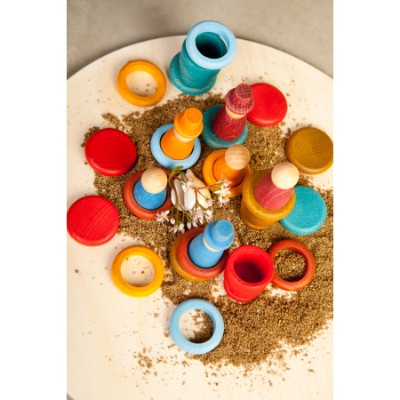 Contém: 3 Nins, 3 Nins com chapéu, 3 Copos, 9 Argolas, 9 moedas