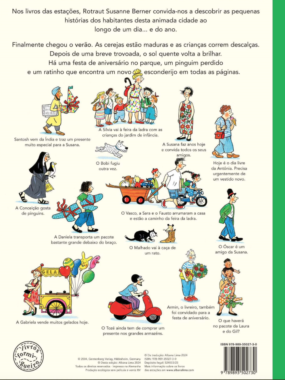 A bela série dos livros das estações de R. S. Berner é uma obra emblemática na história dos livros-formigueiro. A grande ilustradora alemã convida-nos a descobrir as pequenas histórias dos habitantes desta animada cidade ao longo de um dia... e do ano!