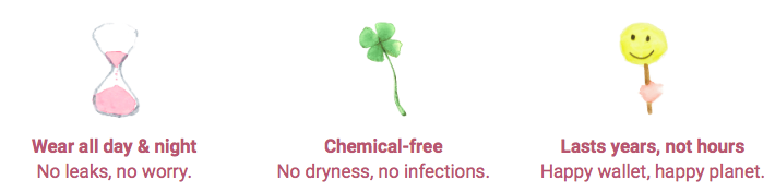 MAIS SAUDÁVEL - porque não liberta qualquer substância química ou sintética como os tampões ou pensos (lixívia, cloro, perfume, colas, loção e dioxinas presentes no algodão) que em contacto com a zona ou parede vaginal são absorvidos directamente pelo organismo, sendo responsáveis pelo aumento do risco de cancros do cólon e do útero, infecções vaginais, enfraquecimento do sistema imunitário, dores de cabeça, mal estar e do síndroma do choque tóxico (SCT) provocada pela intoxicação de produtos sintéticos destinados a tornar os tampões mais absorventes.
