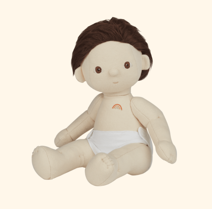 As Dinkum Dolls nascem a partir do algodão exterior mais suave, fofo e macio, tornando-as perfeitas não só para a brincadeira, mas também para um abraço apertado, para a hora do sono num aconchego comfortável. Os detalhes bordados dos olhos e boca ao pequeno arco-íris por cima do coração são os mais fofos de sempre.