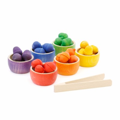 Apoia o pensamento lógico da criança ao agrupar por cores; reforça a imaginação no sentido de manterem guardados nos potes "os seus pequenos tesouros".