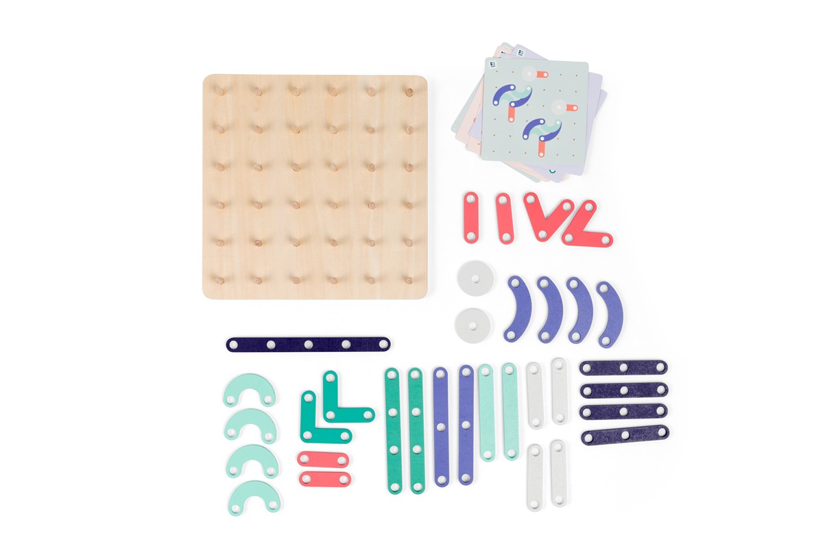 O objetivo é fazer diferentes desenhos e figuras no quadro com as peças de madeira.