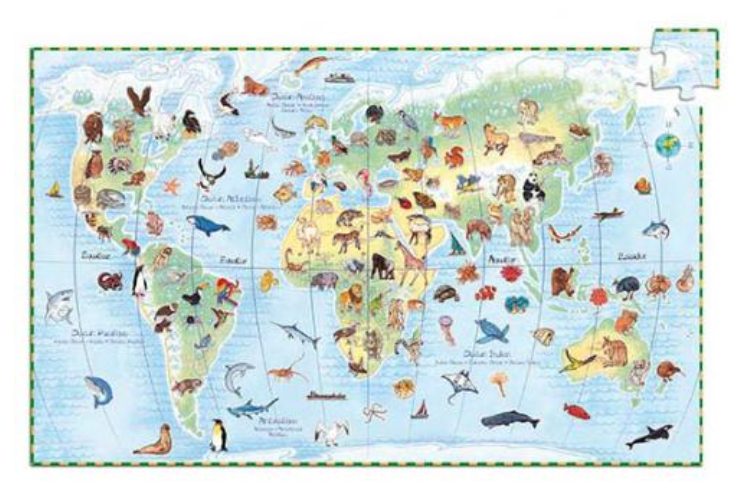 Puzzle Mapa Mundi e seus animais | Djeco