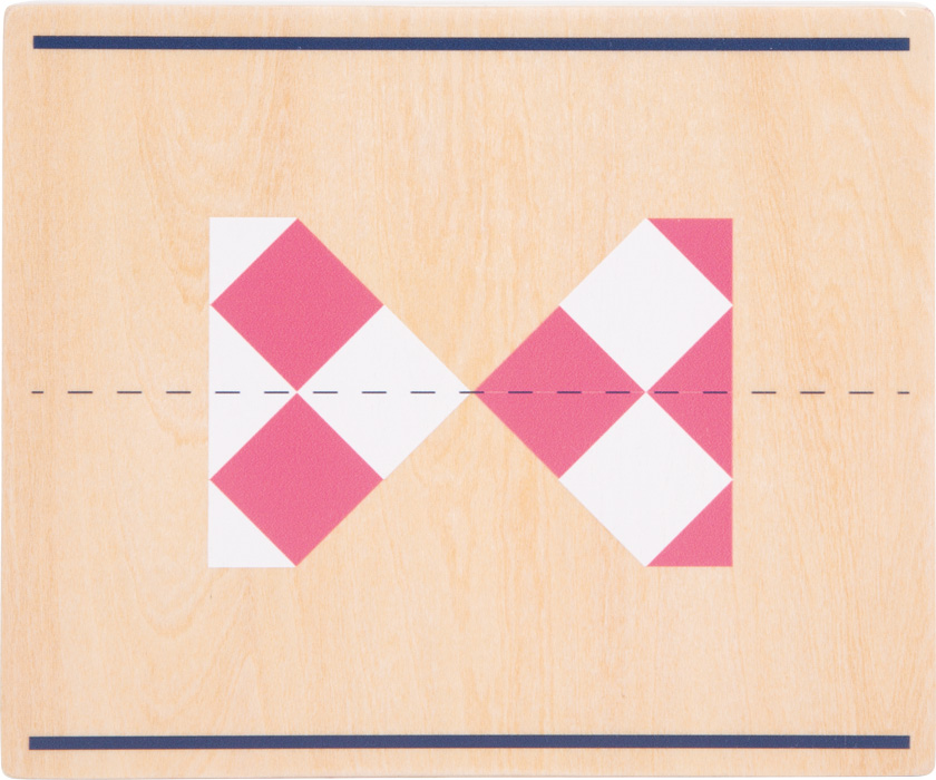 Este fascinante jogo de quebra-cabeça em uma prática caixa de madeira oferece a oportunidade de explorar figuras simétricas e pesquisar formas geométricas.