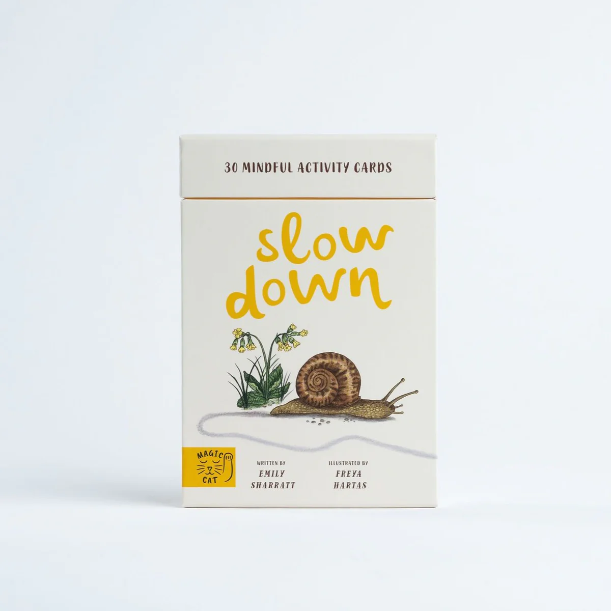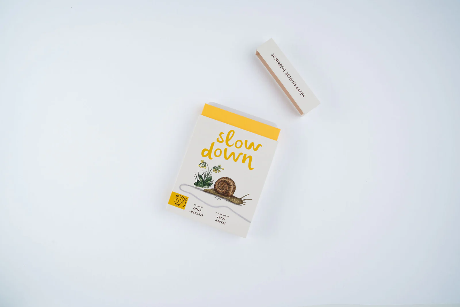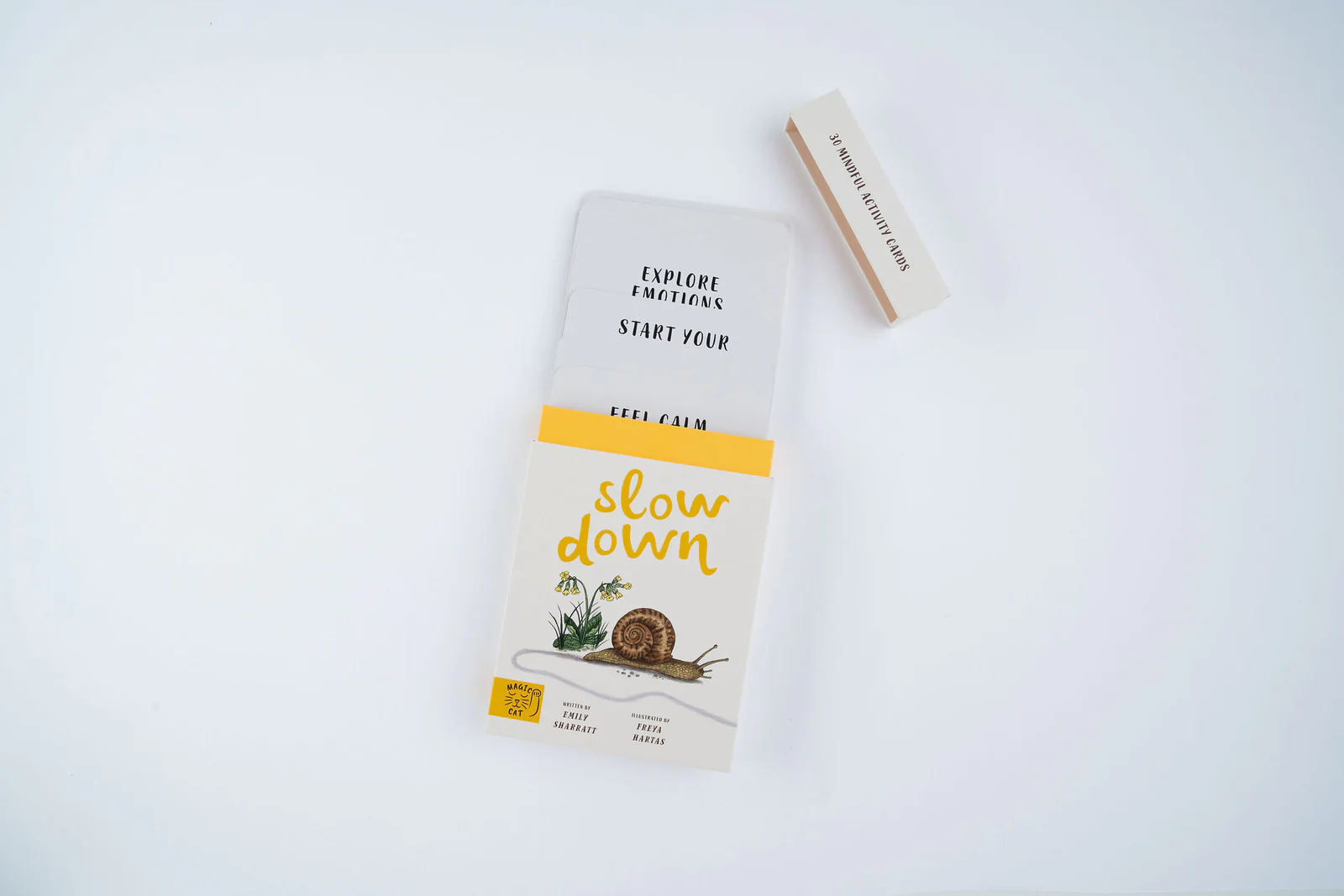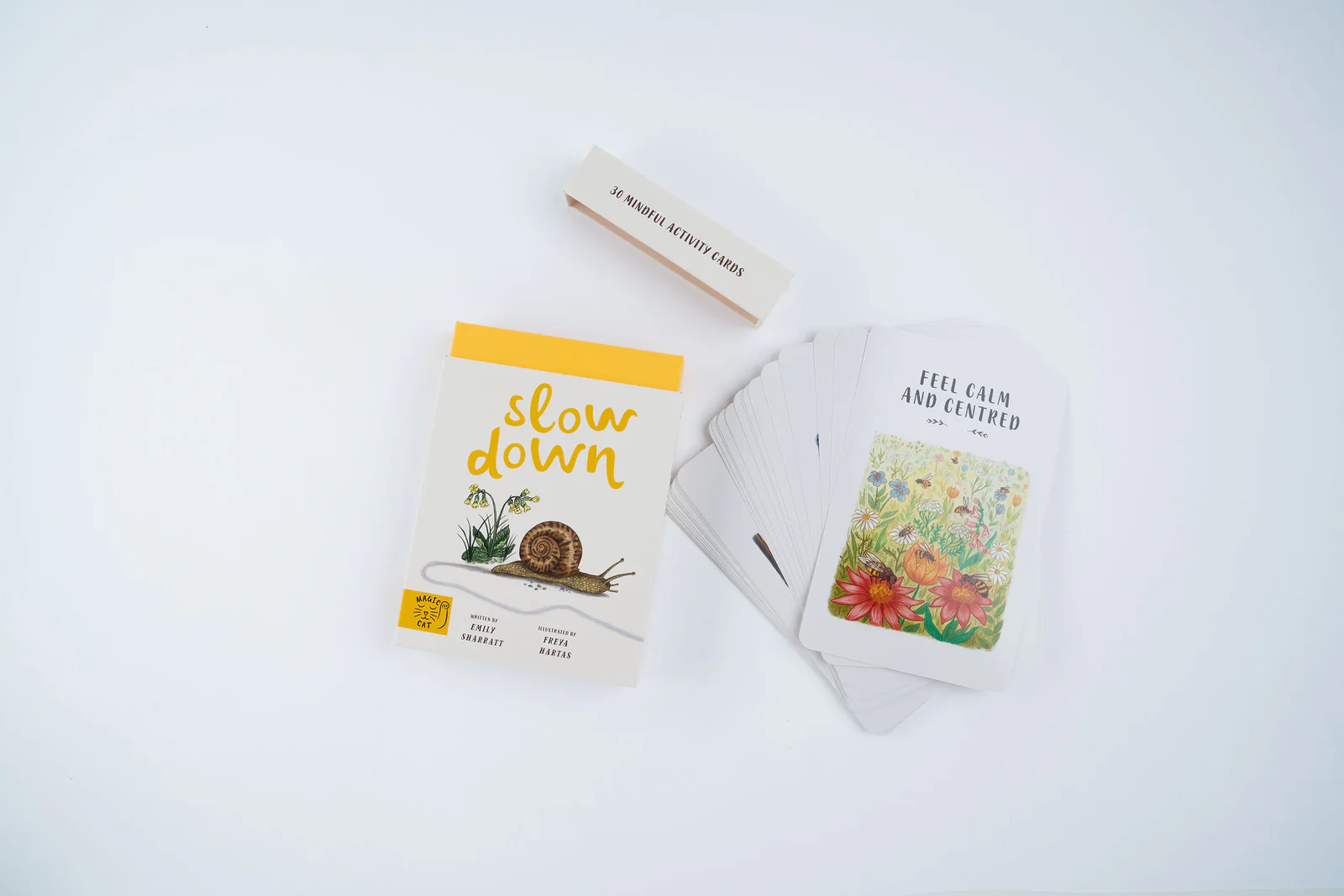 The boxed card deck includes 30 creative mindfulness games, visualizations and exercises inspired by nature and the best-selling Slow Down.