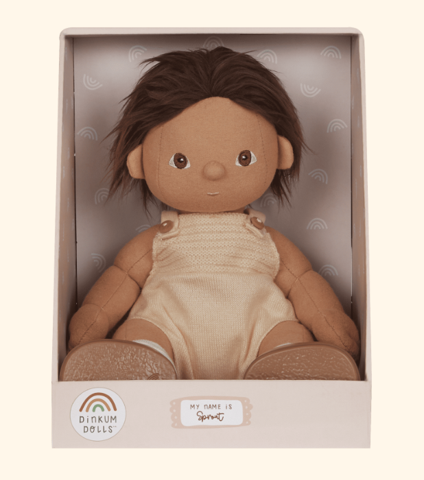 As Dinkum Dolls nascem a partir do algodão exterior mais suave, fofo e macio, tornando-as perfetas não só para a brincadeira, mais também para um abraço apertado, para a hora do sono num aconchego comfortável. Os detalhes bordados dos olhos e boca ao pequeno arco-íris por cima do coração são os mais fofos de sempre.