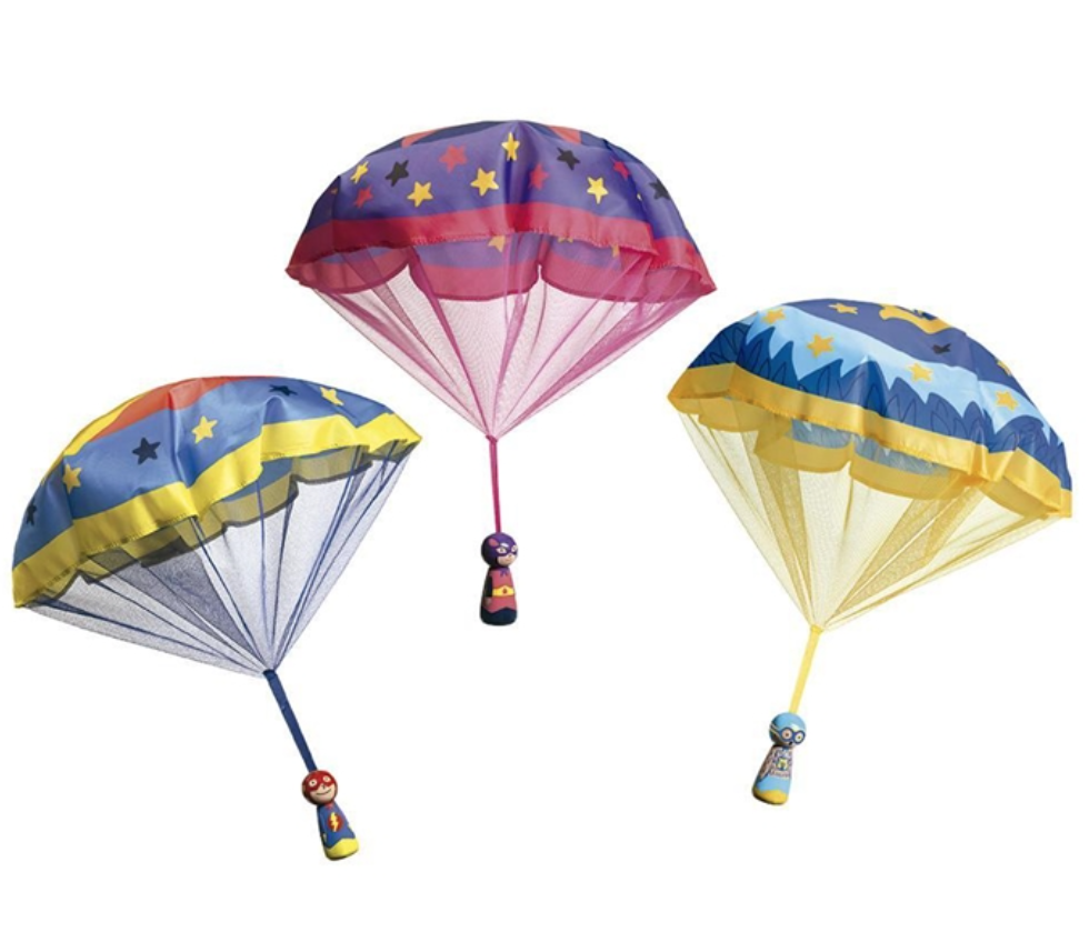 Os Heróis Voadores são pequenos paraquedistas de madeira para lançar