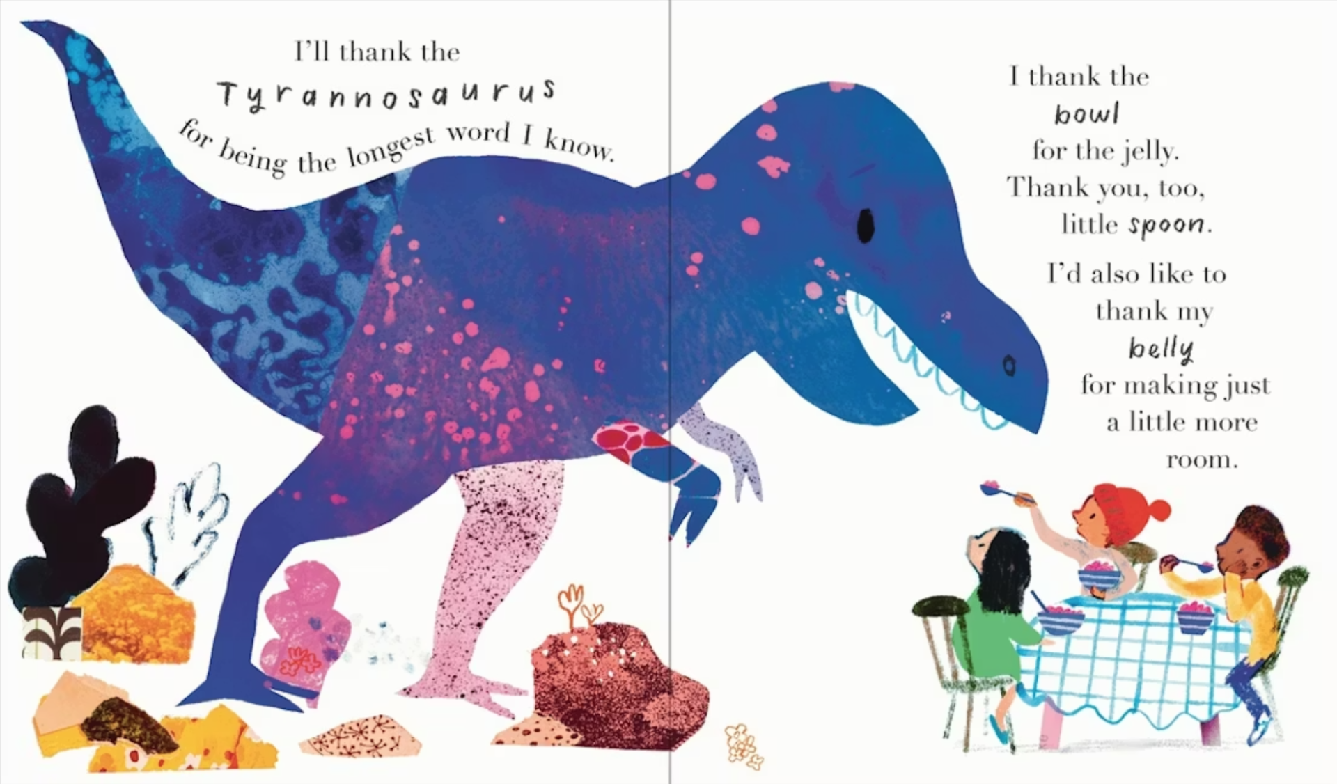 Jarvis creates beautiful collage art in this first book of gratitude; a book that inspires children to think about what they might like to say "thank you" to, too!