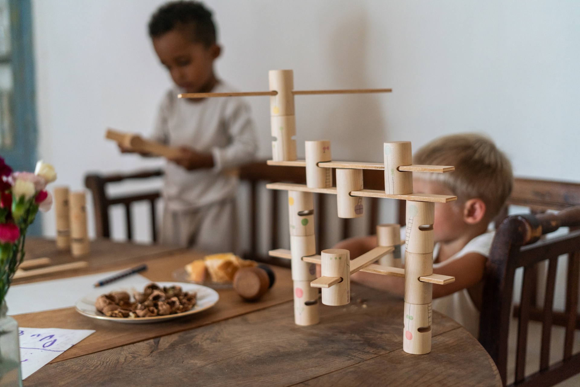 O nosso conjunto de construção sem fim! Construa uma casa acolhedora na floresta, crie o seu próprio mundo numa terra distante ou projete algo completamente novo. Com estes blocos e plataformas de madeira, lindamente pintados à mão, as possibilidades são ilimitadas!